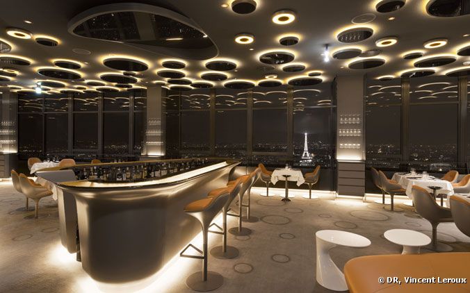 La décoration du restaurant avec des lumières quelques peu tamisé, une vue incroyable sur Paris by night.
