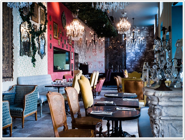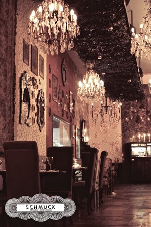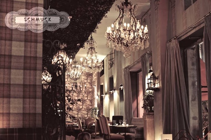 This trendy cocktail bar which has skipped across the Seine, with its fabulously decadent baroque decoration including ornate chandeliers, cameos, curlicues faux 18th century chairs and mirrors. Large framed mirrors and paintings adorned on the wall, contributing to Le Schmuck’s eclectic mix of British and baroque styles.