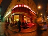 The interior consists of a bar area and multiple small tables.