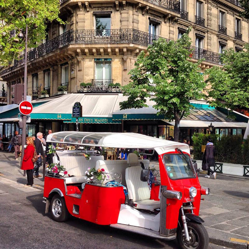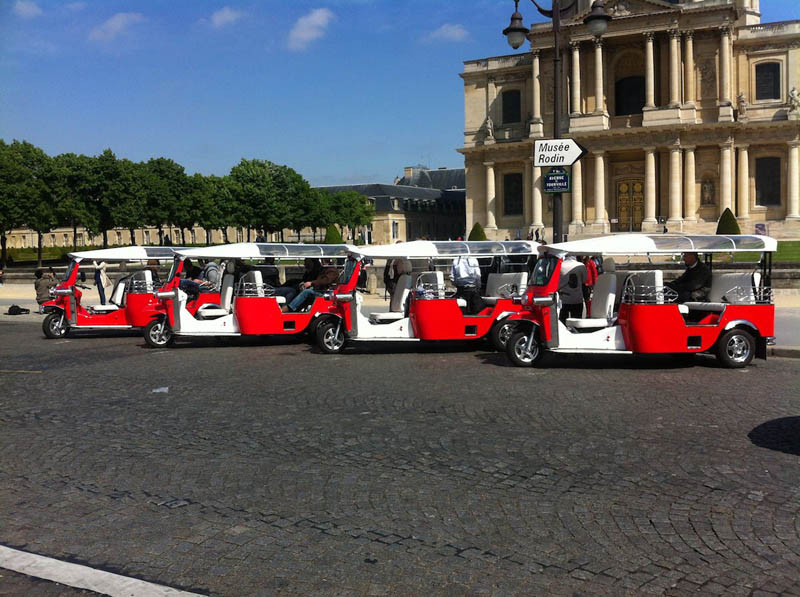 If you want to discover Paris an exceptionally and friendly way, with family or friends, go for an unforgettable visit by electric Tuk-Tuk ("e-Tuk-Tuk"), that combines a panoramic view, anecdotes of the driver-guide about the mythical Parisian monuments and squares, silent softness of an electric motor, and very comfortable seats for up to 6 people !